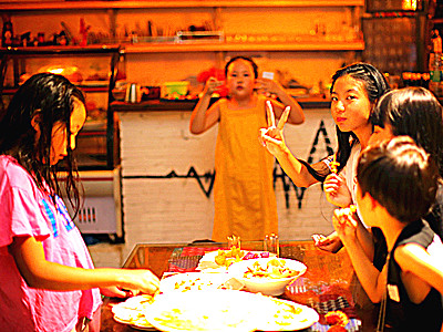 拍摄训练课余和小伙伴们一起品尝美食。